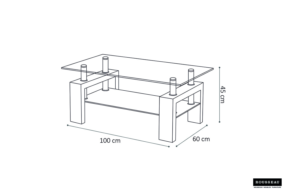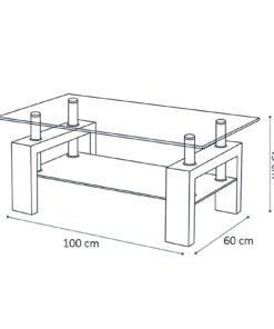 Hoogglans zwarte salontafel 100×60 cm, 45 cm hoog, strak voor moderne woonkamers.