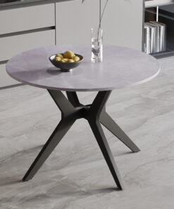 Deze ronde eettafel in glanzend Italiaans grijs steenlook geeft je eetkamer een luxe, moderne uitstraling met een rustige, verfijnde basis. Met een hoogte van 75,5 cm en een diameter van 110 cm is hij ideaal voor compact tafelen, een gezellige koffiehoek of een stijlvolle eetplek in een appartement. De ronde vorm houdt de ruimte open en sociaal, terwijl de glanzende afwerking het licht mooi reflecteert voor een ruimtelijk effect.