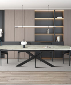 Deze uitschuifbare eettafel in glanzend steenbeige Deens ovaal design geeft je eetkamer een warme, luxe uitstraling met een rustige, moderne basis. Met een hoogte van 74,5–77 cm en een lengte van 160 cm die uitschuift tot 240 cm creëer je snel extra ruimte voor diners, familiebezoek en gezellige avonden met vrienden. De Deens ovale vorm zorgt voor zachte lijnen en een open gevoel in de ruimte, waardoor de tafel elegant oogt, ook wanneer je hem volledig uitschuift.