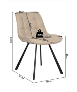 Deze stoel in Ote Montego stof in beige/lichtgrijs geeft je interieur een lichte, rustige uitstraling en past moeiteloos aan de eettafel of in de keuken. Met een formaat van 80 × 51 × 61 cm oogt hij compact en modern, terwijl hij prettig zit voor dagelijks gebruik. De zachte, neutrale tint combineert makkelijk met houttinten, natuursteenlook en zwarte accenten, waardoor je snel een harmonieus geheel creëert.