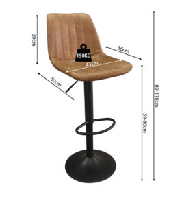 Barkruk Barcelona cognac PU, verstelbaar 89–110×43×50 cm, stijlvol, comfortabel en modern.