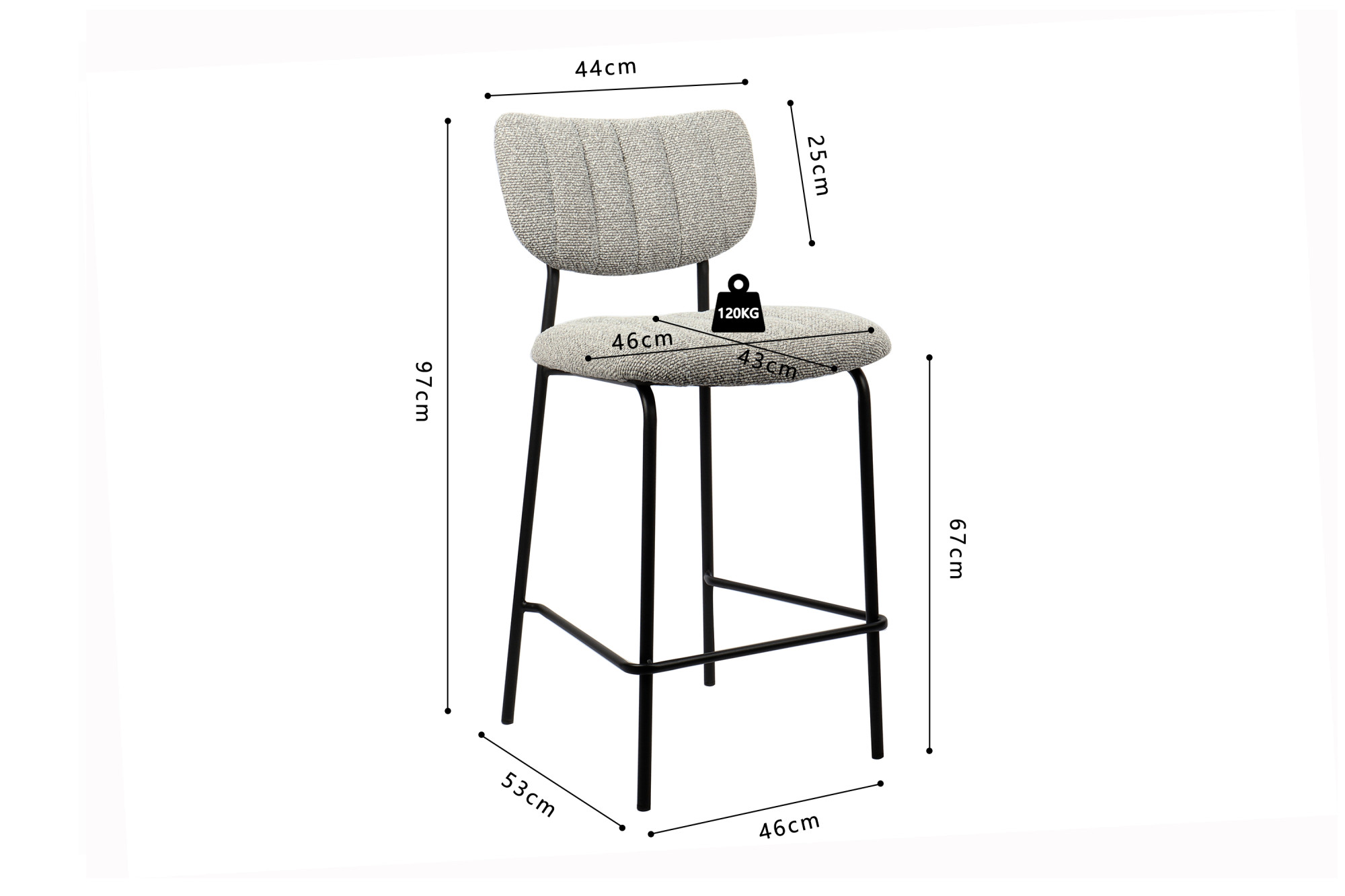Deze barstoel met lichtgrijze Ote Lisa 453 stoffen bekleding geeft je interieur een frisse en moderne uitstraling. Met een hoogte van 97 cm en een formaat van 46 × 53 cm biedt de stoel een comfortabele zit aan het bar- of keukenblad. De zachte stof zorgt voor prettig zitcomfort en maakt de stoel geschikt voor dagelijks gebruik.
