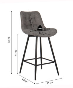 Deze barstoel Ariba in grijze Ote Montego 466 stof geeft je interieur een moderne en stijlvolle uitstraling. Met een hoogte van 93 cm en een formaat van 46 × 55 cm biedt de stoel een comfortabele zit aan het keukeneiland of de bar. De zachte stof zorgt voor prettig zitcomfort en maakt de stoel geschikt voor langere momenten aan tafel.