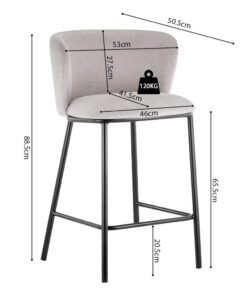 Deze barstoel met beige Ote Belfast 23 stoffen bekleding geeft je interieur een warme en moderne uitstraling. Met een hoogte van 88,5 cm en een formaat van 53 × 50,5 cm biedt de stoel een comfortabele zit aan het bar- of keukenblad. De zachte stof zorgt voor prettig zitcomfort en maakt de stoel geschikt voor dagelijks gebruik.