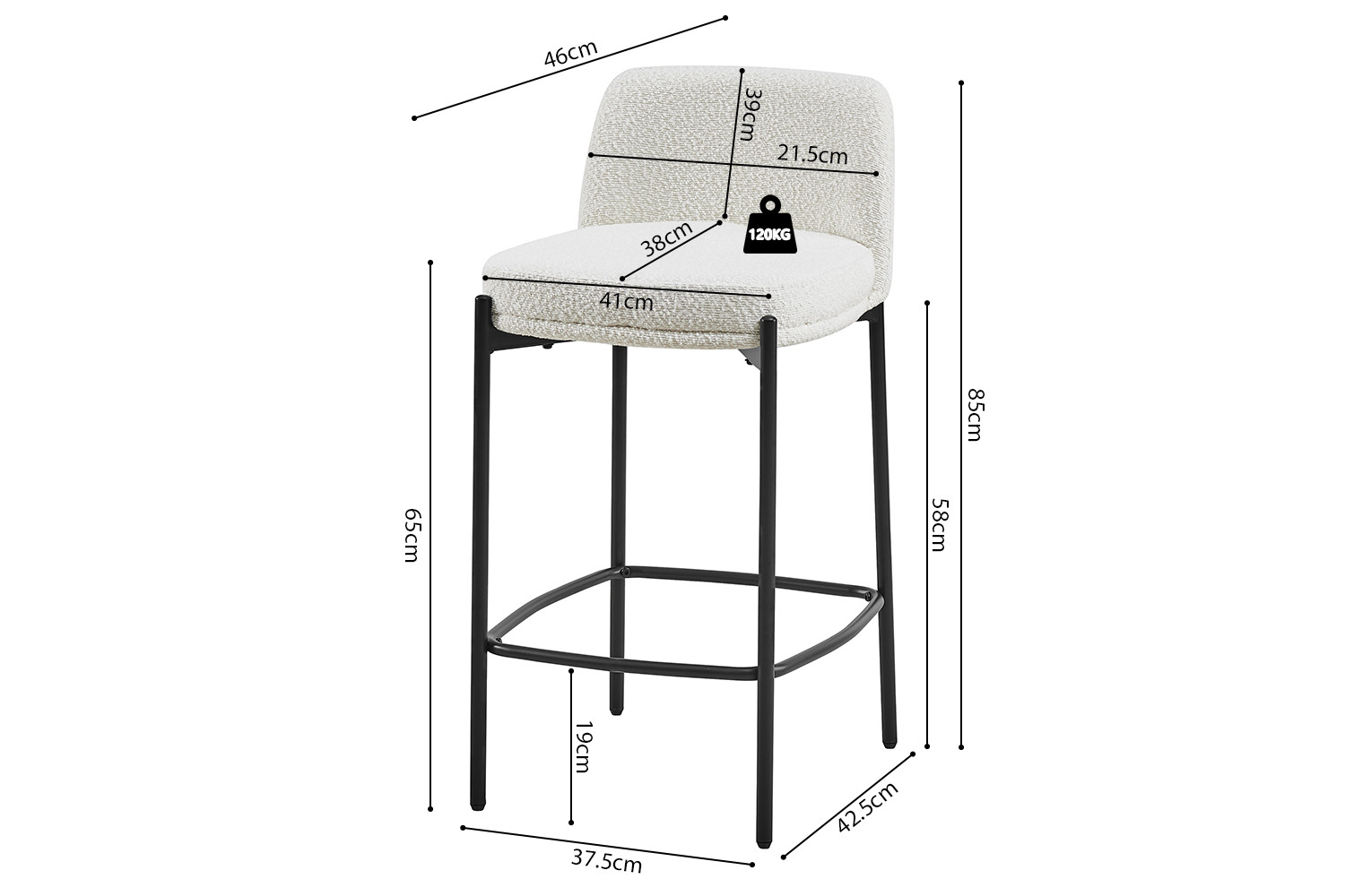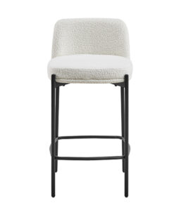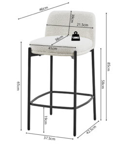 Deze barstoel met witte stoffen bekleding geeft je interieur een frisse en moderne uitstraling. Met een hoogte van 85 cm en een formaat van 37,5 × 46 cm biedt de stoel een comfortabele zit aan het bar- of keukenblad. De zachte stof zorgt voor prettig zitcomfort en maakt de stoel geschikt voor dagelijks gebruik.