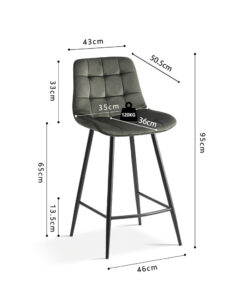 Deze barstoel met groene fluwelen bekleding geeft je interieur een frisse en stijlvolle uitstraling. Met een hoogte van 95 cm en een formaat van 46 × 36 cm biedt de stoel een comfortabele zit aan het bar- of keukenblad. De zachte fluweelstof zorgt voor prettig zitcomfort en maakt de stoel geschikt voor dagelijks gebruik.