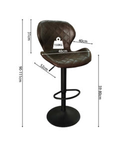 Deze barstoel Malaga in donkerbruine PU Ote Topper 05 geeft je interieur een warme en stijlvolle uitstraling. Met een verstelbare hoogte van 90–111 cm en een formaat van 48 × 52 cm biedt de stoel een comfortabele zit aan het keukeneiland of de bar. De PU-bekleding zorgt voor prettig zitcomfort en is onderhoudsvriendelijk, ideaal voor dagelijks gebruik.