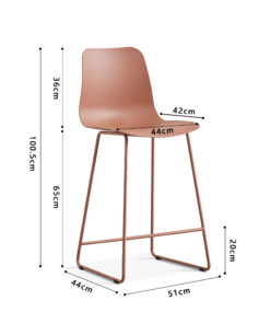 Deze barstoel met terracotta PP-zitting geeft je interieur een warme en eigentijdse uitstraling. Met een hoogte van 100,5 cm en een formaat van 51 × 44 cm biedt de stoel een comfortabele zit aan het bar- of keukenblad. Het stevige PP-materiaal zorgt voor prettig zitcomfort en maakt de stoel geschikt voor dagelijks gebruik.