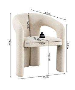 Deze stoel in Sahara beige stof geeft je interieur een rustige, moderne uitstraling en voegt direct warmte toe aan de ruimte. Met een formaat van 74 × 62 × 63 cm is hij ideaal voor aan de eettafel, een gezellige leeshoek of als stijlvolle stoel bij een werkplek. De zachte beige tint combineert moeiteloos met hout, zwart metaal en neutrale kleuren, waardoor je eenvoudig een harmonieus geheel creëert.