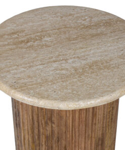 Het natuurlijke hout en travertijn zorgen voor karakter en sfeer in elke ruimte en combineren moeiteloos met zowel moderne als klassieke interieurs. Zoek je een stijlvolle bijzettafel die functionaliteit en een tijdloze uitstraling samenbrengt? Dan is dit een uitstekende keuze voor dagelijks gebruik.