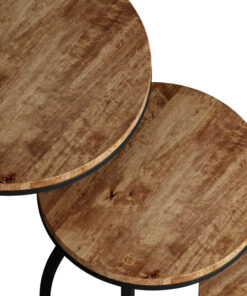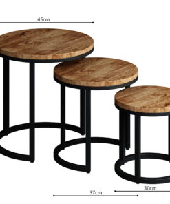 Deze set van 3 bijzettafels van mangohout geeft je interieur een warme en stijlvolle uitstraling. Met hoogtes van 30, 37 en 45 cm bieden de tafels flexibiliteit en functionaliteit voor verschillende toepassingen in de woonkamer.