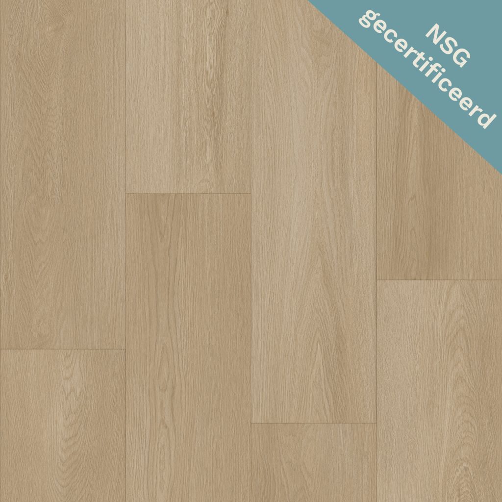 Dankzij de realistische houtstructuur en matte afwerking oogt deze vloer als echt hout, terwijl hij onderhoudsarm, waterbestendig en duurzaam is.
