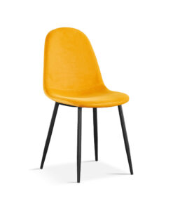 Deze stoel in geel fluweel geeft je interieur direct een warme, luxe uitstraling en brengt een vrolijk accent aan je eettafel of in je zithoek. Met een formaat van 87 × 49 × 54 cm past hij moeiteloos in de eetkamer, keuken of als extra zitplaats, zonder de ruimte vol te maken. De gele tint combineert verrassend mooi met houttinten, zwart metaal en neutrale kleuren en zorgt voor een frisse, eigentijdse look.