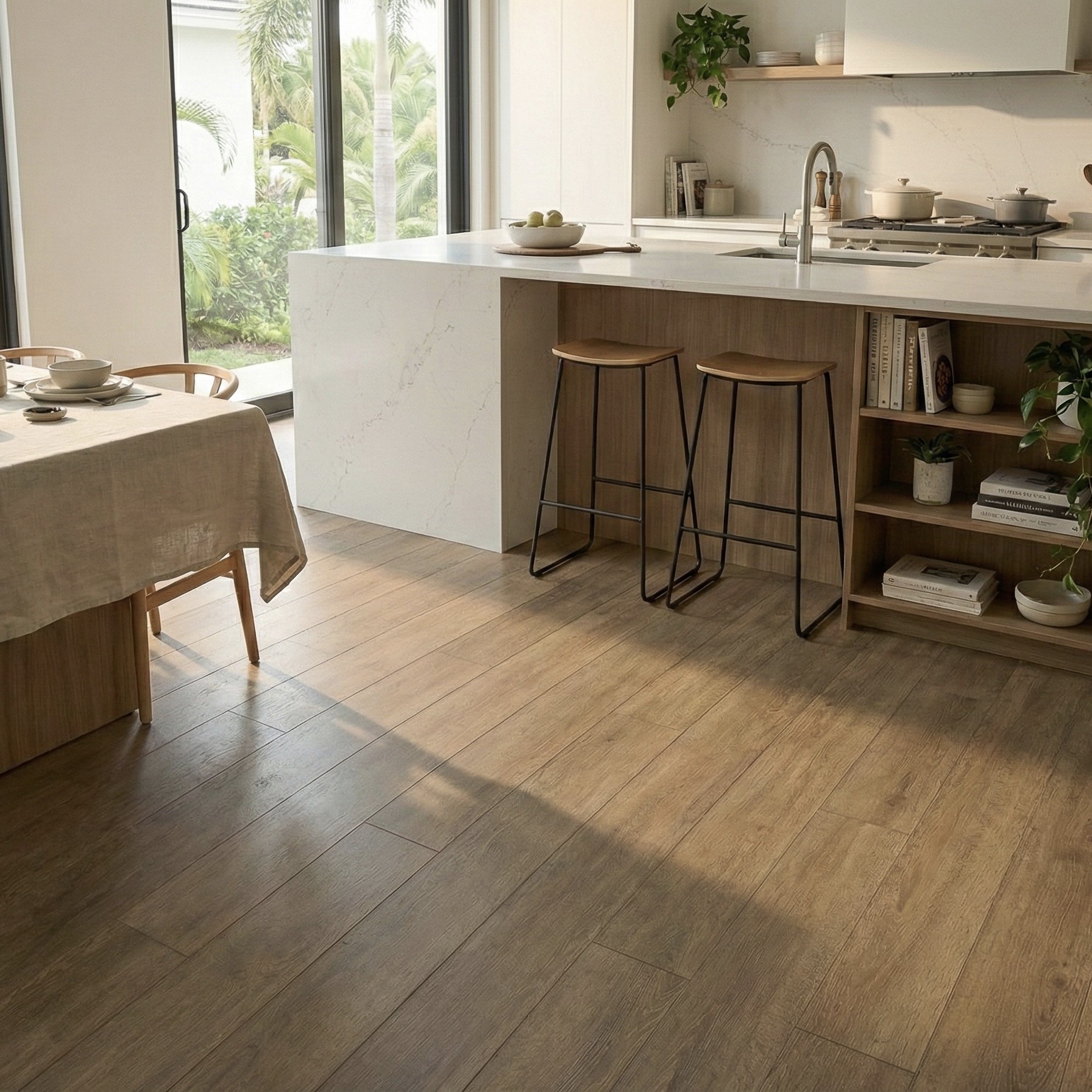 De dryback (verlijmde) uitvoering zorgt voor een strak en stabiel eindresultaat, ideaal voor intensief dagelijks gebruik. De vloer is slijtvast, waterbestendig en onderhoudsvriendelijk, waardoor hij geschikt is voor zowel woningen als commerciële toepassingen. De matte afwerking versterkt de authentieke houtlook zonder het onderhoud van echt hout.