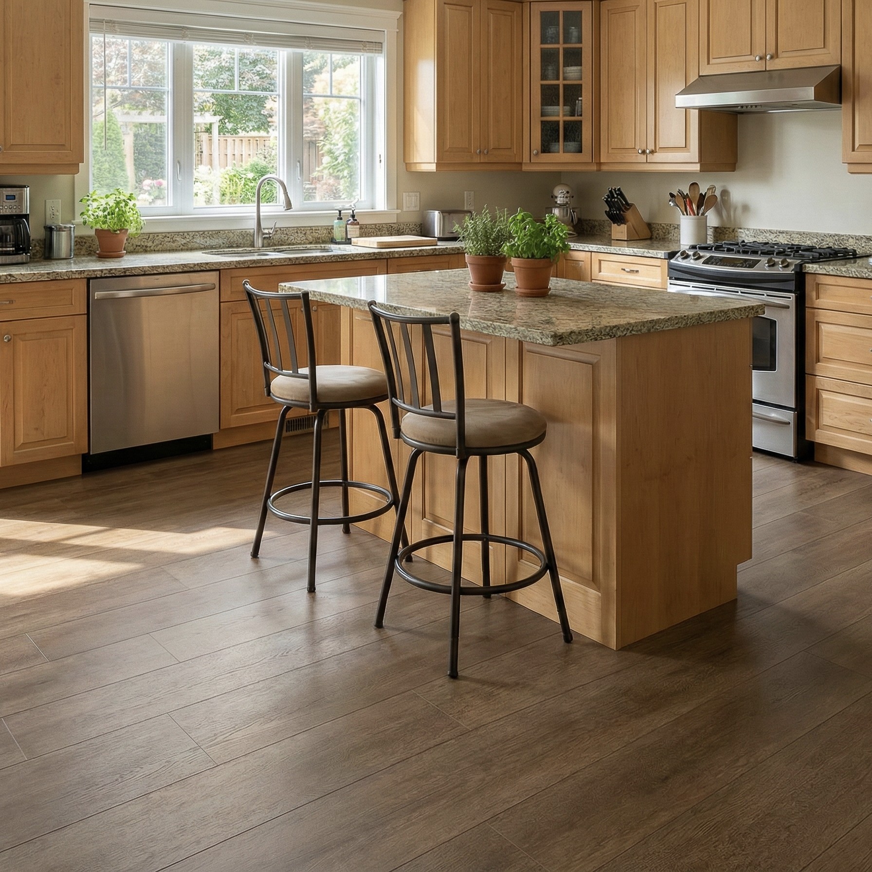 Dankzij de dryback (verlijmde) uitvoering ligt de vloer strak en stabiel, wat zorgt voor een duurzaam en professioneel eindresultaat. De sterke slijtlaag maakt de vloer geschikt voor intensief gebruik, zowel in woningen als in commerciële ruimtes. De natuurgetrouwe houtstructuur en matte afwerking zorgen voor een realistische uitstraling zonder het onderhoud van echt hout.