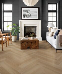 Geef je interieur een stijlvolle en tijdloze uitstraling met de Braag Floors Prosecco Herringbone Dryback. Deze luxe PVC vloer combineert het klassieke visgraatpatroon met een moderne, natuurlijke houtlook in een elegante prosecco tint. Perfect voor zowel moderne als klassieke interieurs.