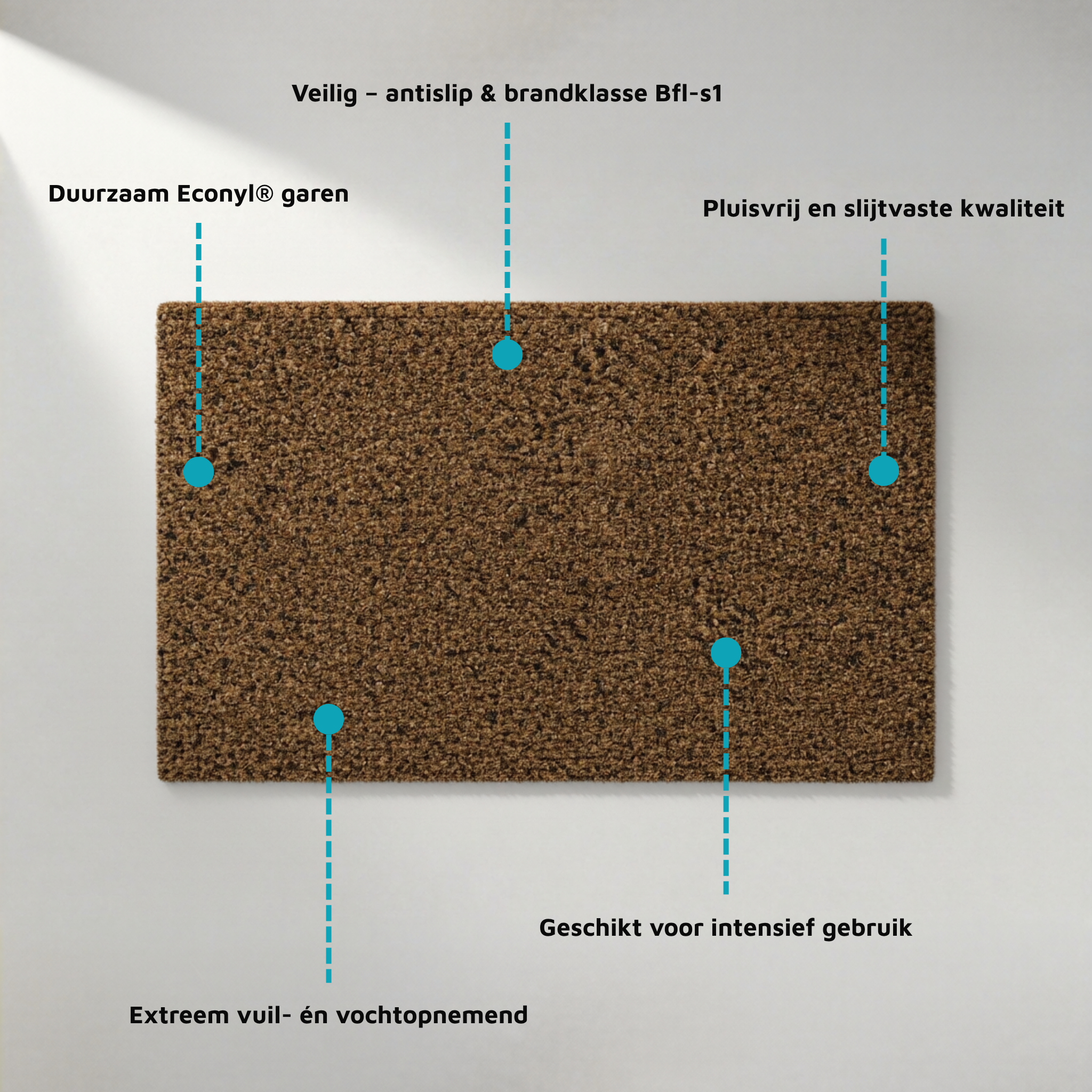 Naast het opvangen van vuil en vocht, zorgt de mat ook voor een comfortabele loopervaring. De vezels dempen geluid en bieden grip, waardoor uitglijden wordt voorkomen en de entree veilig blijft voor bezoekers.