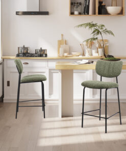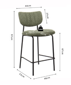 Deze counterstoel met groene Ote Lisa 356 stoffen bekleding geeft je interieur een frisse en moderne uitstraling. Met een hoogte van 97 cm en een formaat van 46 × 53 cm biedt de stoel een comfortabele zit aan het keuken- of barblad. De zachte stof zorgt voor prettig zitcomfort en maakt de stoel geschikt voor dagelijks gebruik.