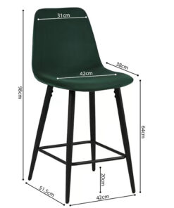 Deze counterstoel Boy in groen fluweel geeft je interieur een frisse en stijlvolle uitstraling. Met een hoogte van 98 cm en een formaat van 42 × 51,5 cm biedt de stoel een comfortabele zit aan het keukeneiland of de bar. De zachte fluwelen bekleding zorgt voor prettig zitcomfort en maakt de stoel geschikt voor langere momenten aan tafel.