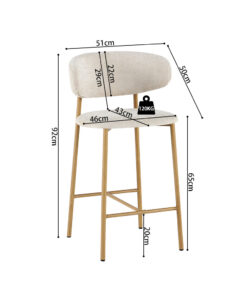 Deze counterstoel met naturel frame en beige stoffen bekleding geeft je interieur een warme en stijlvolle uitstraling. Met een hoogte van 92 cm en een formaat van 51 × 50 cm biedt de stoel een comfortabele zit aan het keuken- of barblad. De zachte stof zorgt voor prettig zitcomfort en maakt de stoel geschikt voor langdurig gebruik of ontspannen momenten.