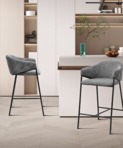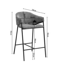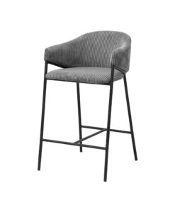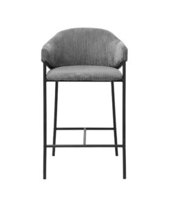 Deze counterstoel met donkergrijze ribstof geeft je interieur een stoere en moderne uitstraling. Met een hoogte van 90 cm en een formaat van 54 × 59 cm biedt de stoel een comfortabele zit aan het keuken- of barblad. De zachte ribstof zorgt voor prettig zitcomfort en maakt de stoel geschikt voor dagelijks gebruik.