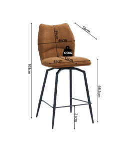 Counterstoel Lara roestkleurig stof, draaibaar, afmetingen 103×48×56 cm, stijlvol en comfortabel.