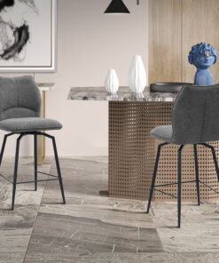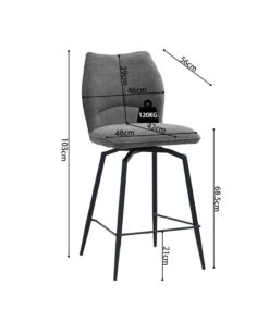 Deze draaibare barstoel met grijze stoffen bekleding geeft je interieur een moderne en frisse uitstraling. Met een hoogte van 103 cm en een formaat van 48 × 56 cm biedt de stoel een comfortabele zit aan het kookeiland of in een gezellige ontbijthoek. De zachte stof zorgt voor prettig zitcomfort en maakt de stoel geschikt voor lange ontbijten, diners of ontspannen momenten.