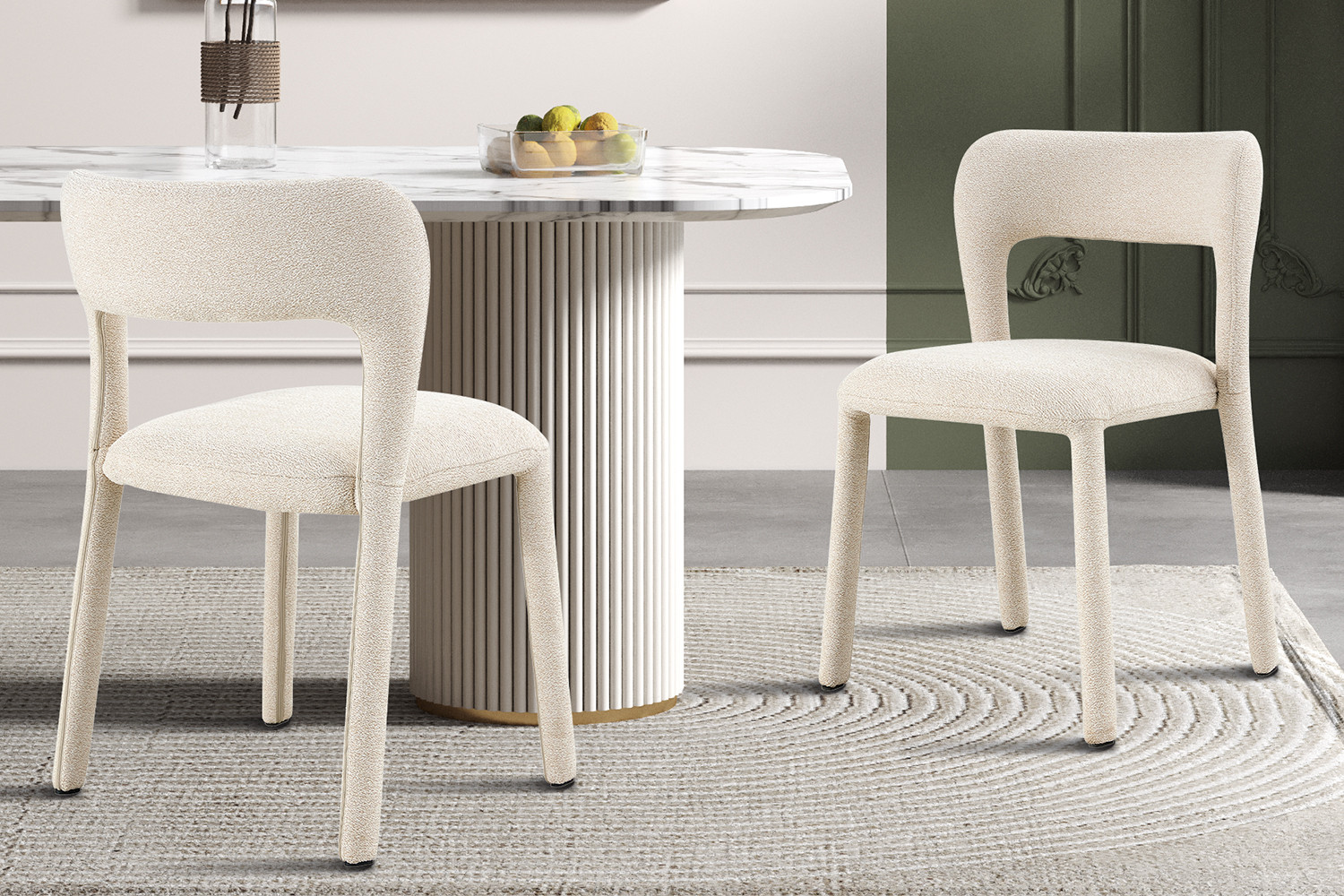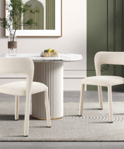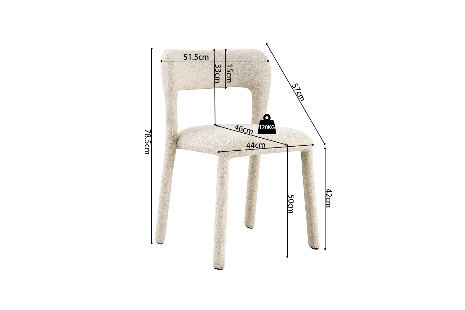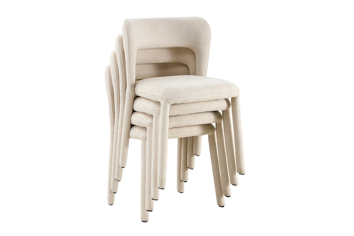 Stapelbare stoel 78,5×51,5×57 cm, Sahara beige stof, ideaal voor moderne eetkamers.