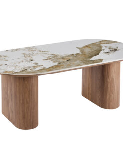 Glanzende steenlook salontafel Pandora Beige 120×60 cm, hoogte 43 cm, luxe voor woonkamer.