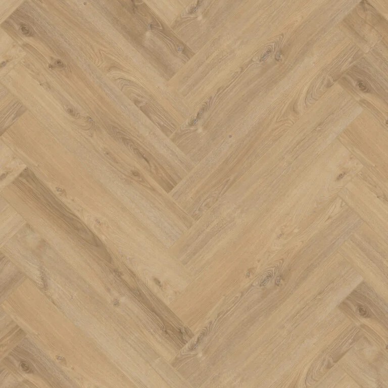 Elegant visgraat-laminaat met een realistische houtlook in lichte eikenkleur. De vloer is voorzien van een 4-zijdige V-groef en heeft waterafstotende Aquaprotect-laag, waardoor morsen of vocht geen probleem is. Met een dikte van 8 mm en gebruiksklasse 32 is deze vloer slijtvast en geschikt voor intensief woongebruik. De planken (85,8 × 14,3 cm) zijn eenvoudig met een kliksysteem te leggen, en de vloer is geschikt voor vloerverwarming of vloerkoeling.