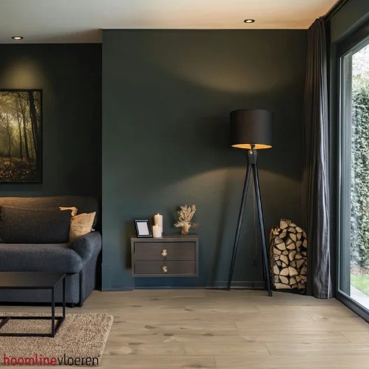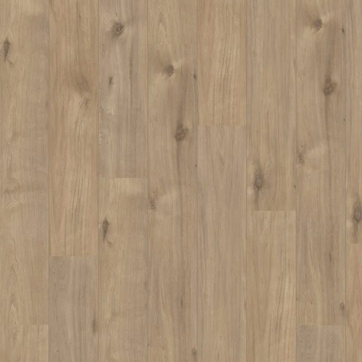 Warm eiken laminaat met rechte planken, slijtvast en onderhoudsvriendelijk. Ideaal voor intensief woongebruik en geschikt voor vloerverwarming.