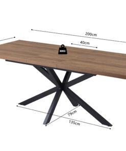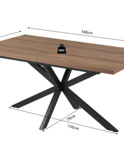 Deze uitschuifbare eettafel in donkerbruin decor geeft je eetkamer een warme en stijlvolle uitstraling en vormt een tijdloos middelpunt in de ruimte. Met een hoogte van 76 cm en een lengte van 160 cm die eenvoudig uitschuift tot 200 cm creëer je extra ruimte voor diners, familiebezoek of gezellige avonden met vrienden. Het rechthoekige ontwerp zorgt voor een strakke en praktische indeling van je eetruimte.