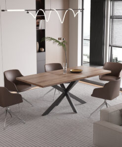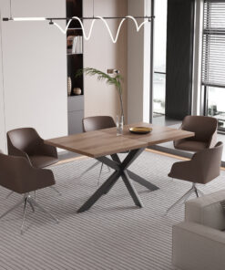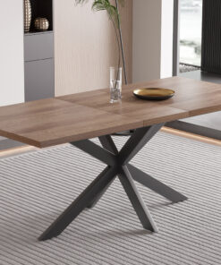 De donkerbruine houtlook brengt warmte en karakter in het interieur en laat zich moeiteloos combineren met lichte stoffen, zwarte accenten en natuurlijke materialen. Zoek je een uitschuifbare eettafel van 160–200 cm in donkerbruin decor die je eetkamer direct meer flexibiliteit en sfeer geeft? Dan is dit een praktische en stijlvolle keuze voor dagelijks gebruik en extra gasten.