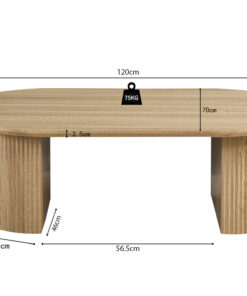 Salontafel 120×70 cm, 38 cm hoog, eik naturel look voor moderne woonkamers.