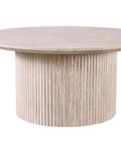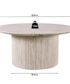 Ronde salontafel 80×80 cm, 38 cm hoog, travertin beige look voor moderne woonkamers.