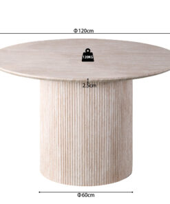 Ronde eettafel 120 cm, 76 cm hoog, travertin beige decor voor moderne eetkamers.