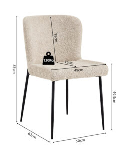 Deze stoel in beige bouclé geeft je interieur een warme, moderne uitstraling en voegt meteen textuur toe aan je eetkamer of zithoek. Met een formaat van 85 × 50 × 62 cm past hij moeiteloos aan de eettafel, in de keuken of als stijlvolle extra zitplaats, zonder de ruimte vol te maken. De beige tint zorgt voor een rustige basis en combineert prachtig met hout, natuursteenlook en zwarte of metalen accenten.