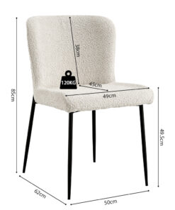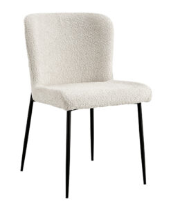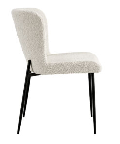 Deze stoel in bouclé ecru geeft je interieur een lichte, warme uitstraling en voegt direct zachte textuur toe aan je eetkamer of zithoek. Met een formaat van 85 × 50 × 62 cm past hij moeiteloos aan de eettafel, in de keuken of als stijlvolle extra zitplaats, zonder dat de ruimte vol oogt. De ecru tint combineert prachtig met hout, natuursteenlook en zwarte of metalen accenten, waardoor je snel een rustig, modern geheel creëert.