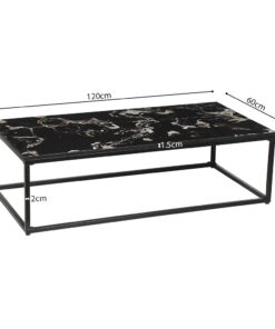 Salontafel 120×60 cm, 35 cm hoog, zwart composiet marmer voor moderne woonkamers.