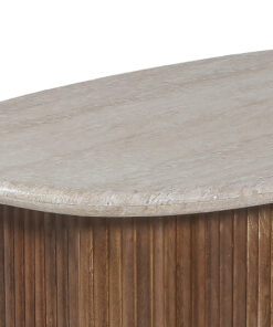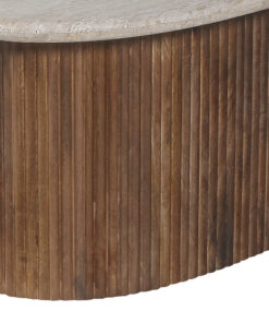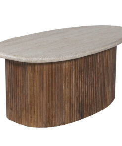 De combinatie van hout en steenlook sluit moeiteloos aan bij moderne, Japandi en warm-minimalistische interieurs. Combineer met lichte stoffen en aardetinten voor een serene uitstraling, of met zwarte accenten voor meer contrast. Zoek je een salontafel van 90 cm in mangohout met beige travertin uitstraling die je interieur direct verfijnt? Dan is dit een tijdloze keuze voor een stijlvolle woonkamer.
