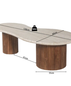 De mix van hout en steenlook sluit moeiteloos aan bij moderne, Japandi en warm-minimalistische interieurs. Combineer met lichte stoffen en aardetinten voor een serene uitstraling, of met zwarte accenten voor extra contrast. Zoek je een salontafel van 120 cm in mangohout met beige travertijn uitstraling die je interieur direct verfijnt? Dan is dit een tijdloze keuze voor een stijlvolle woonkamer.