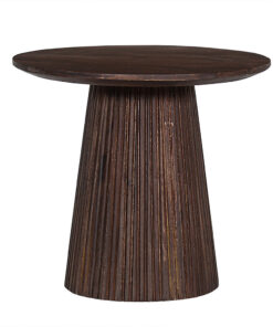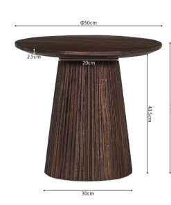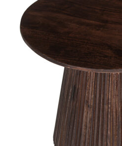 Deze ronde salontafel van donkerbruin mangohout voegt direct warmte en karakter toe aan je woonkamer. Met een compact formaat van 50 × 50 cm en een hoogte van 46 cm past hij perfect naast de bank, in een kleinere zithoek of als extra tafeltje bij je lounge-opstelling. De diepe houttint zorgt voor een sfeervolle, natuurlijke basis en combineert mooi met lichte stoffen, aardetinten en zwarte accenten.