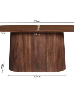 Ovale eettafel 200×100 cm, 76 cm hoog, lichtbruin mangohout voor moderne eetkamers.