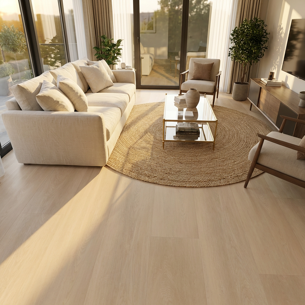 Creëer een lichte en rustige basis in huis met de Lumina plak PVC vloer in beige van OnlineWonen. De rechte plank geeft een ruimtelijk effect en past perfect bij moderne, Scandinavische en landelijke interieurs. De natuurlijke houtlook zorgt voor een warme en tijdloze uitstraling in elke ruimte.