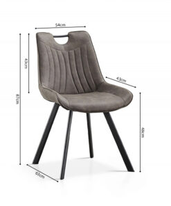 Deze stoel in donkergrijs microvezel PU geeft je interieur een stoere, moderne uitstraling en past perfect aan de eettafel of in een stijlvolle werkhoek. Met een formaat van 87 × 54 × 63 cm biedt hij een comfortabele, royale zit zonder lomp te ogen in de ruimte. De donkergrijze tint is tijdloos en combineert moeiteloos met houttinten, zwart metaal en neutrale kleuren.