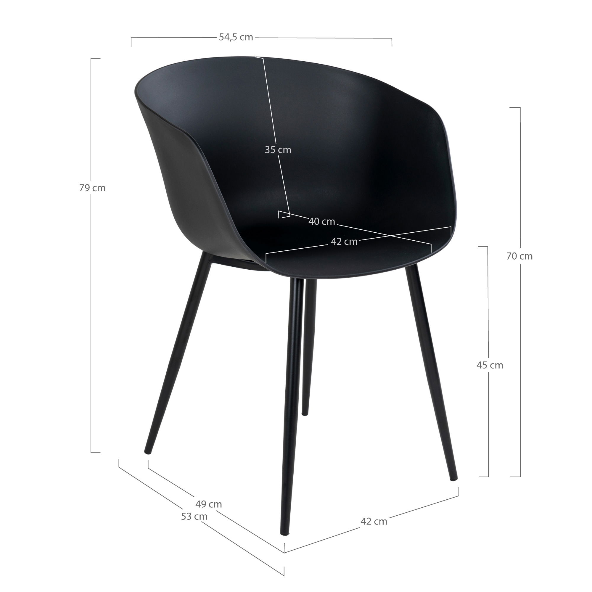 Roda eetkamerstoel — strakke zwarte kuipstoel met zwarte poten