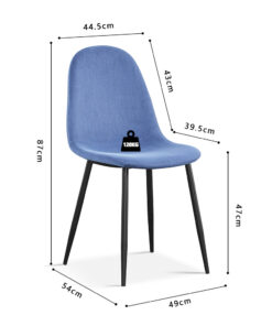 Eetkamerstoel Boy in lichtblauw fluweel, afmetingen 87×49×54 cm, stijlvol, comfortabel en elegant.