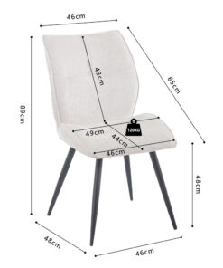 Deze eetkamerstoel met Davis Perfect Harmony 02 ecru stof geeft je interieur een rustige en stijlvolle uitstraling. Met een hoogte van 89 cm en een formaat van 49 × 65 cm biedt de stoel een comfortabele zit aan de eettafel of in een gezellige zithoek. De zachte stoffen bekleding zorgt voor prettig zitcomfort en maakt de stoel geschikt voor lange diners of ontspannen momenten.