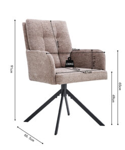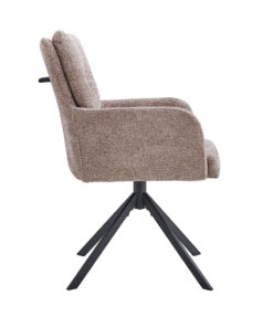 De neutrale zandkleur brengt rust en sfeer in de ruimte en combineert moeiteloos met houttinten, zwarte accenten en moderne materialen. Zoek je een stijlvolle draaibare eetkamerstoel die comfort en een eigentijdse uitstraling samenbrengt? Dan is dit een uitstekende keuze voor dagelijks gebruik.