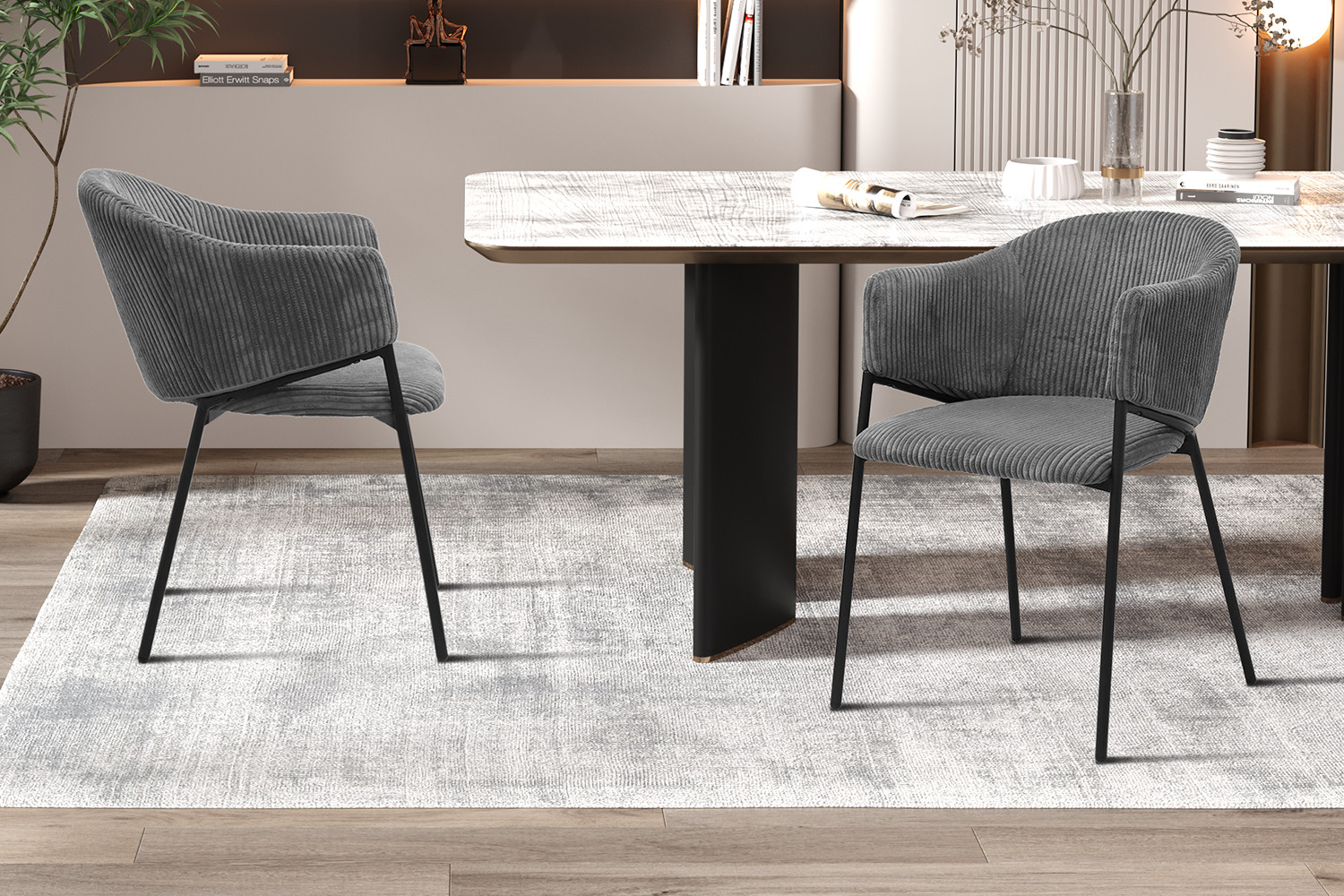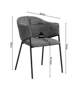 Eetkamerstoel Hugo donkergrijs ribfluweel, afmetingen 78×54×62 cm, stijlvol, comfortabel en modern.